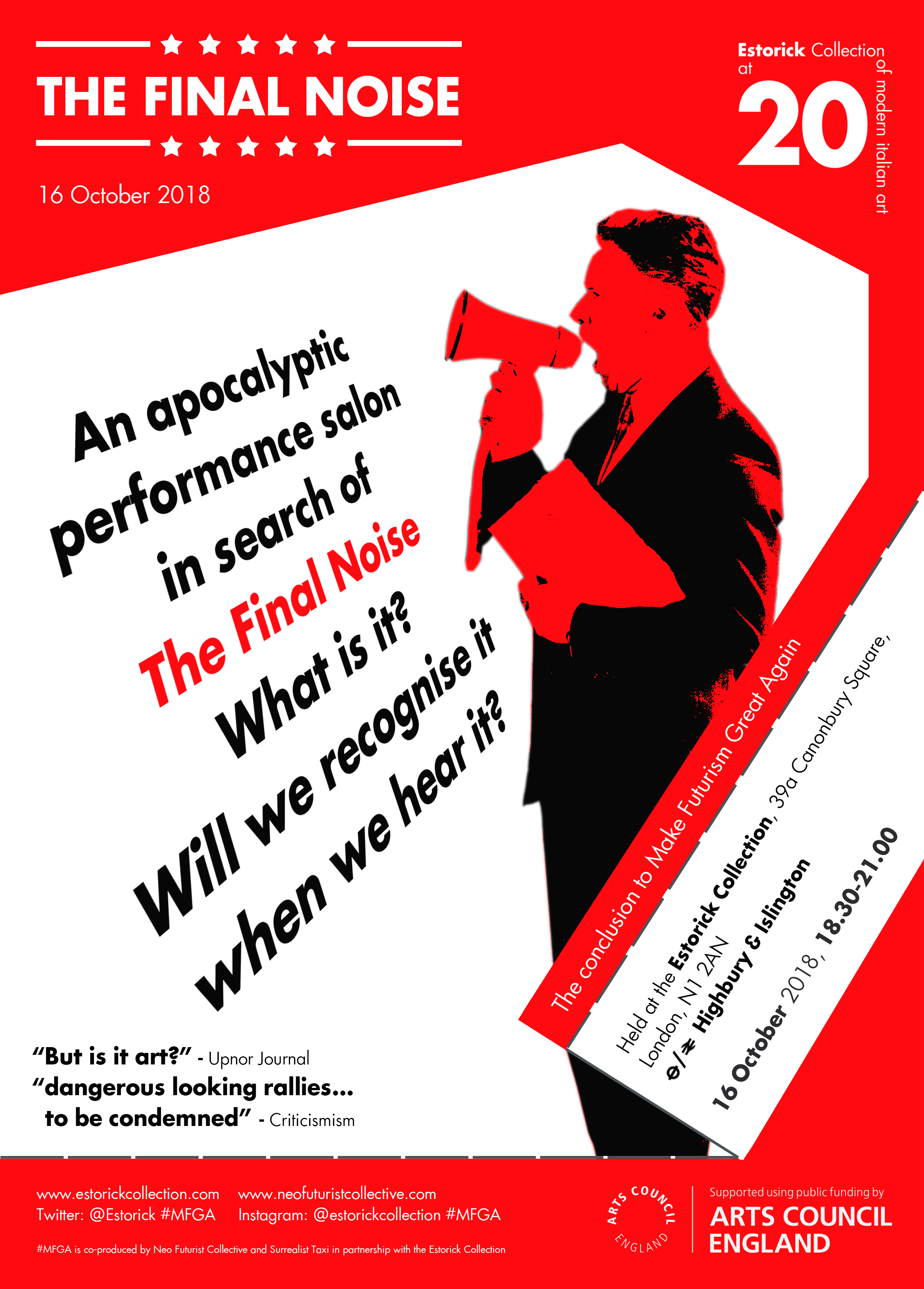 Tickets are on sale now for The Final Noise at The Estorick Collection in London on Oct 16th. https://www.estorickcollection.com/events/the-final-noise