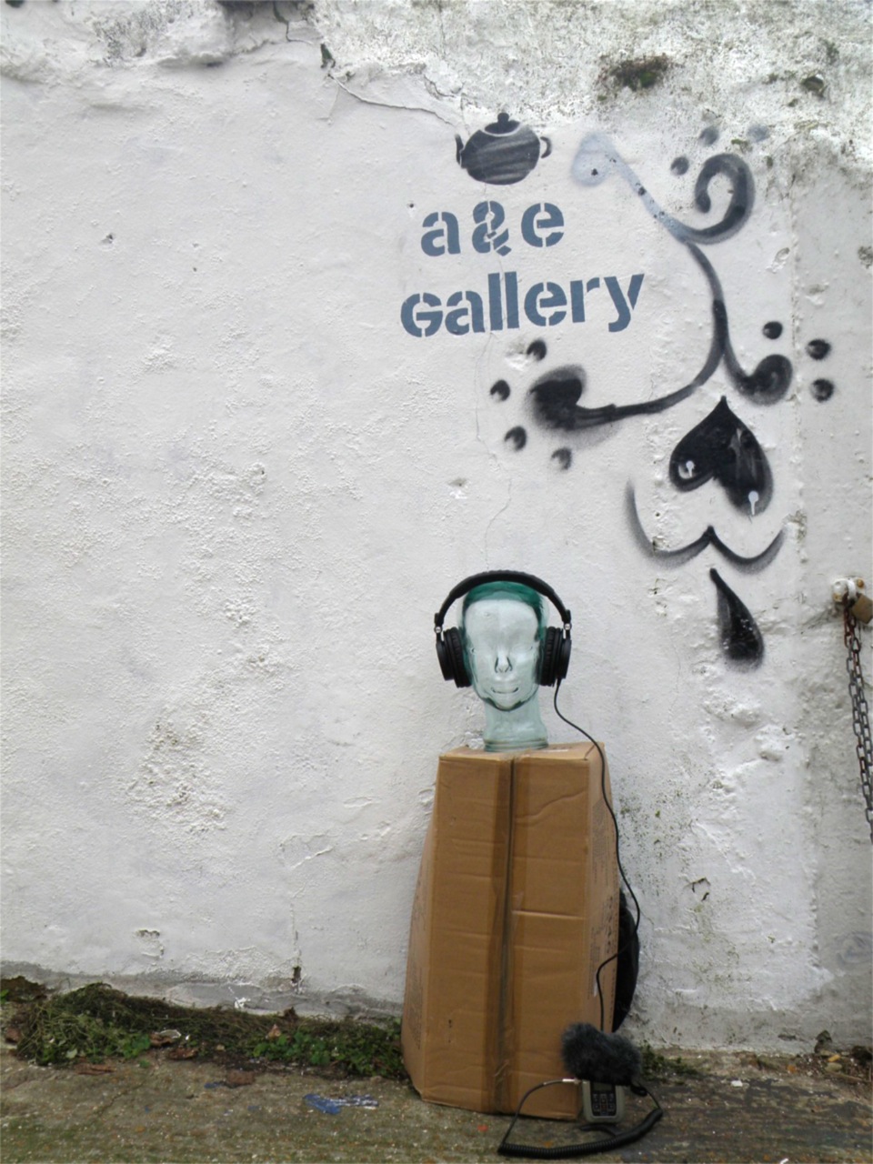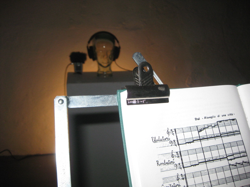 In 2011, Artistic Director Joseph Young created a solo installation for iPods at a&e gallery in Brighton, assisted by Associate Director Peter Faulkner. The audience were invited to step through a theatrical curtain into a listening salon, in which rows of chairs were set out for an imaginary concert featuring a mute performer (in the form of a dummy head on a plinth) and the remaining fragments of the score of Awakening of A City set out in front of the audience.